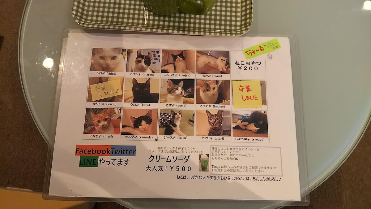 Cat Café Tango Menu